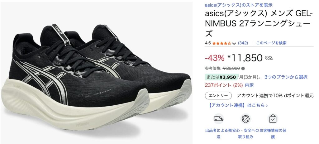私ならセール価格でゲルニンバス27を購入します。理由は、重量以外で大幅な進化を感じられなかったため。30g軽量化するために1万円を超える価格差を埋めることはできない。ジョグシューズならなおさら。より詳細な点を解説していく。