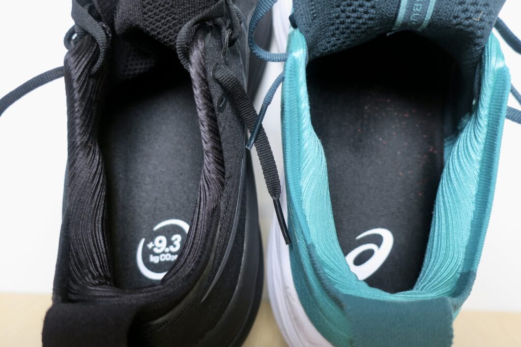ミッドソールの形状以外で大きな違いはない。強いて上げるなら、「27」は踵部に「ASICS」というデカいロゴが入っており、タウンユースにおいては後ろからの印象が少しダサい。