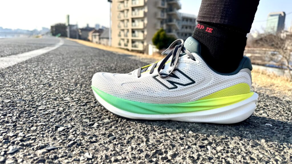 今作より新素材として採用された『Infinion』がとても良い!柔らかく程よく沈むミッドソール材によりクッションシューズらしい特性を持ち合わせながら、しっかりと反発力も生み出してくれる。高次元でクッション性能と反発力が共生してる。1080v15を推す理由はここに詰まっているため、是非履いてみてほしい。