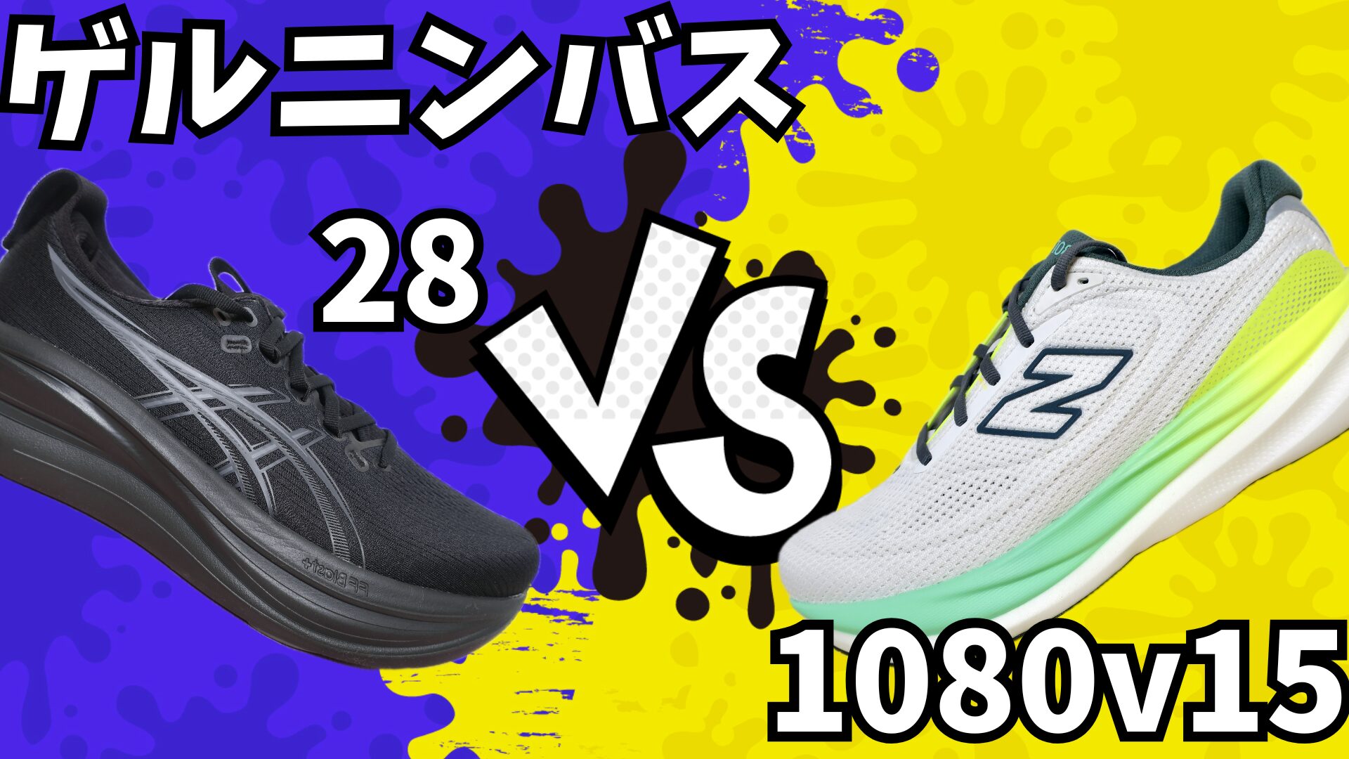 私なら『1080v15』を購入します。もちろん友人に進める場合もこっち。理由は、柔らかく沈み込みのあるクッションシューズらしい特性を持っているため。『ゲルニンバス28』は沈み込みが弱く、クッションシューズより安定性重視のスタビリティシューズに近くなっている。そのため1足で全ての練習を完結させたいランナーには『ゲルニンバス28』を。履き分けを行い、足に優しい性能を求めるランナーには『1080v15』をオススメする。
