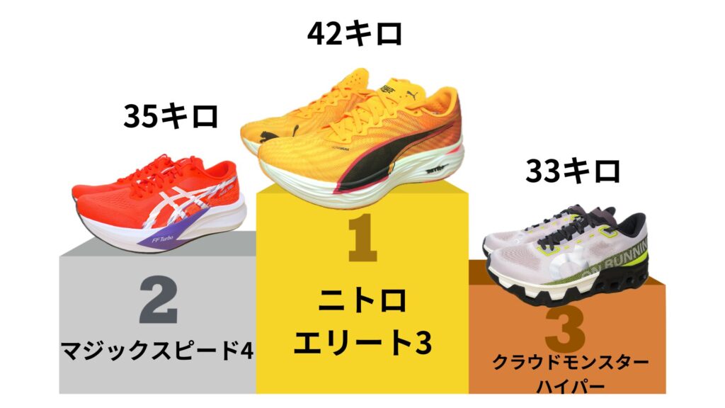 ・ニトロエリート3=岡山マラソンで着用。雨だったけどグリップ力抜群。