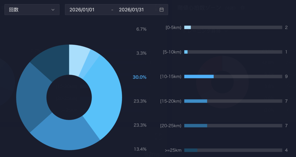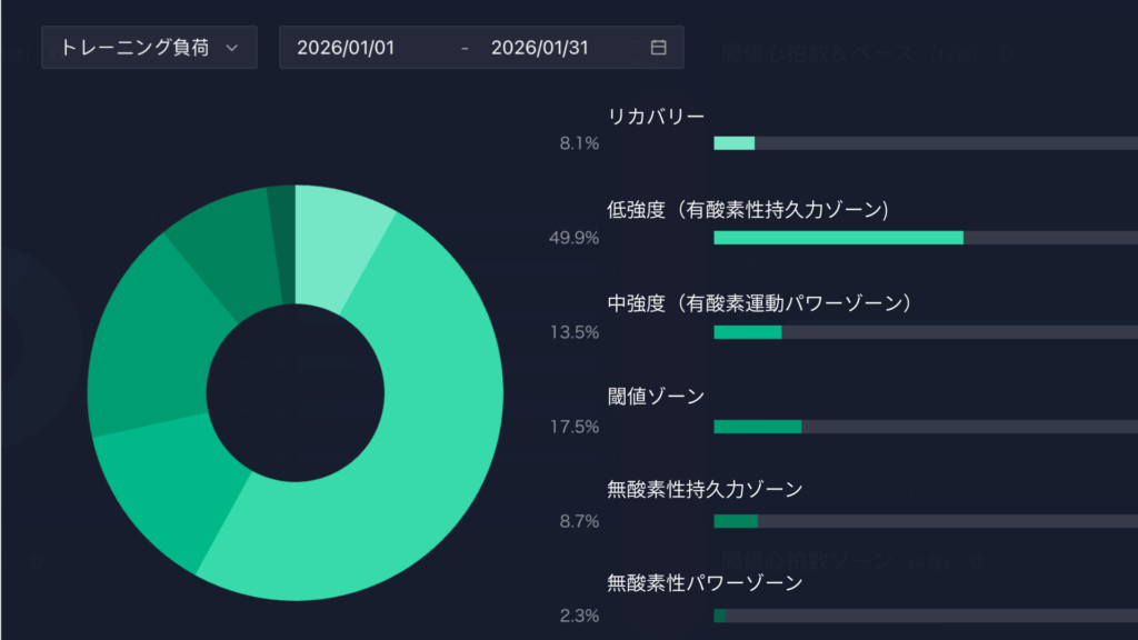 ってことで1月の練習強度の割合はこんな感じ。