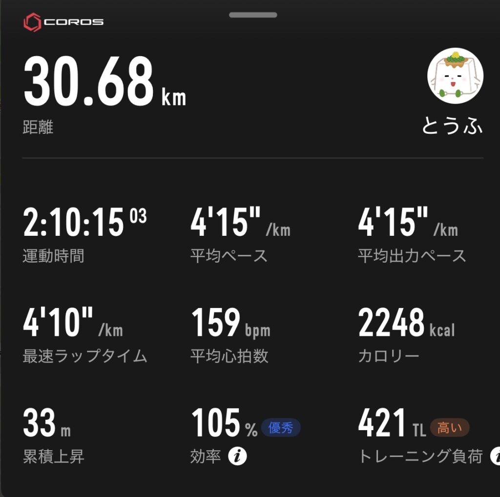 COROSのトレーニングハブ素晴らしすぎる…。っということは一旦置いといて、低中強度で約7割を占め、残り3割はしっかりと追い込む高強度練習を行なっている。このトレーニング方法に変えてから実感しているメリットとしては「高強度練習で力をしっかり出せる」「中途半端な疲労感で高強度を行わないため故障の確率が下がった」という2点が大きい。特に前者がデカく、今まで中強度(4分30秒前後)で毎日走ることが多く、微妙な疲労感が日々溜まり、高強度練習で乗り気になれない日が多かったが、しっかりこなせるようになった。