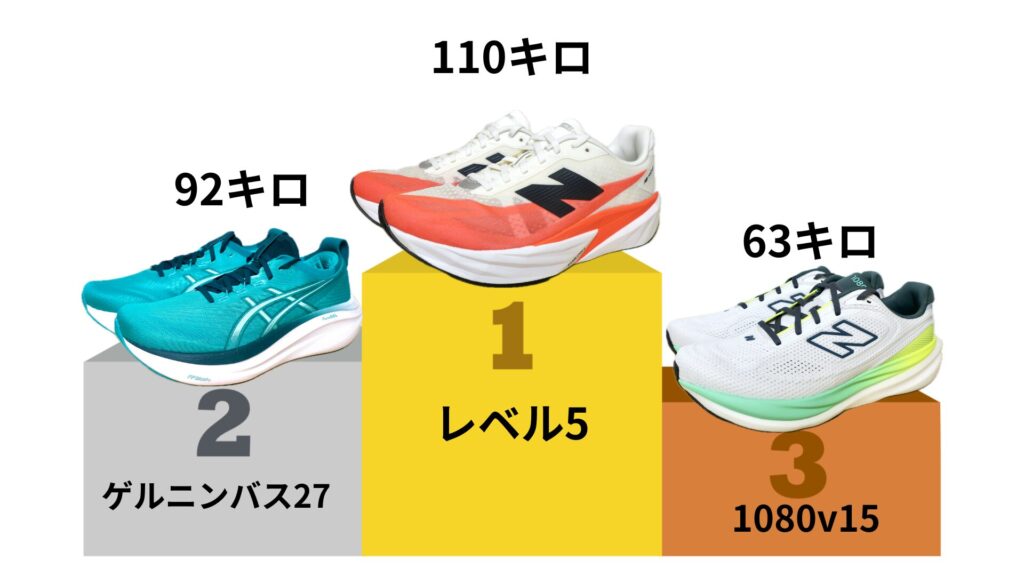 レベル5=自力底上げ目的。シューズの耐久性が高くて驚いてる。