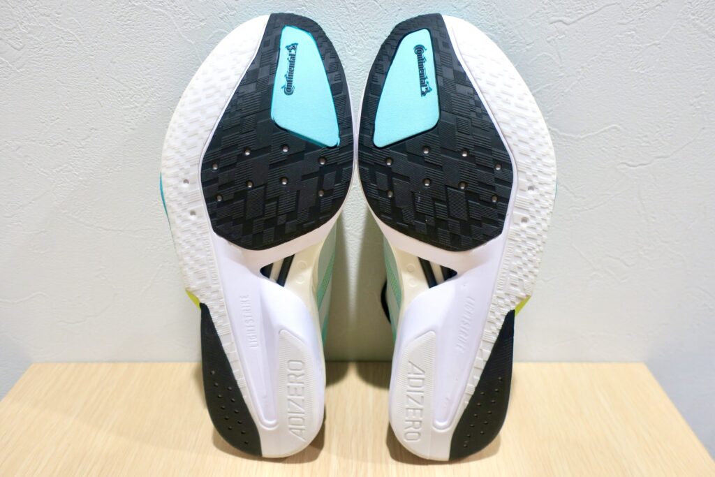 アディダスでお馴染みの『コンチネンタルラバー』を蹴り出し箇所に採用し、滑らないアウトソールを実現。着地点などは軽量性を意識し『LIGHT TRAXION』を採用。