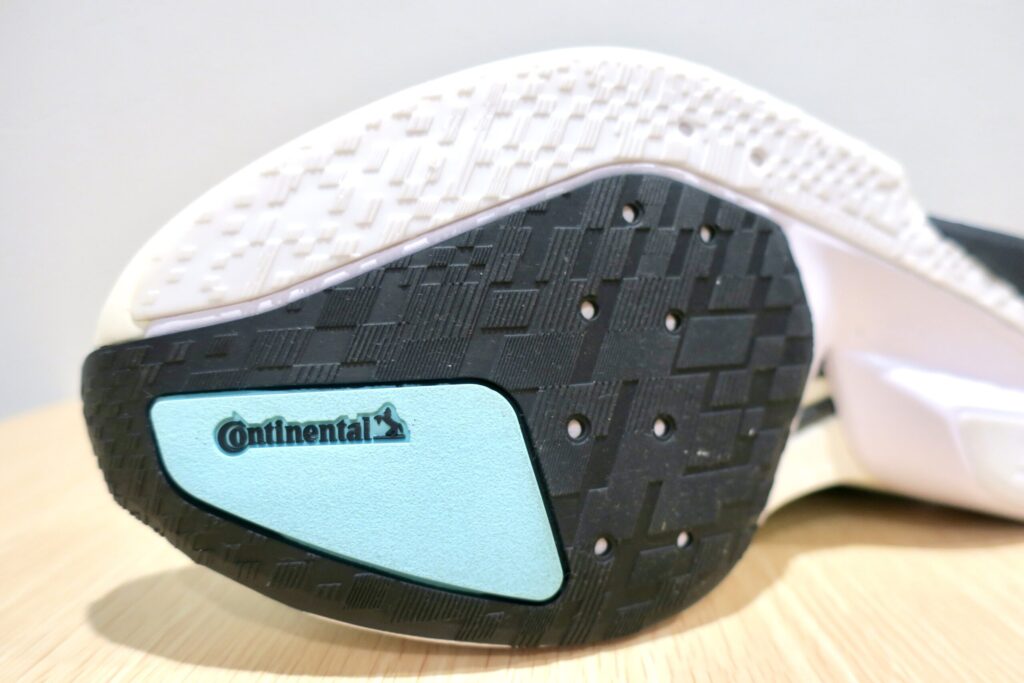 昨今、少し値の張るジョグシューズには良いアウトソール材を搭載するのが当たり前になりつつあるが、やはり嬉しい。雨上がりやタイルの上で、変な緊張感なくフォームを維持できるのは怪我予防の観点からも大切。そしてコンチネンタルラバーは安心感と信頼性があり、ポイントが高い。