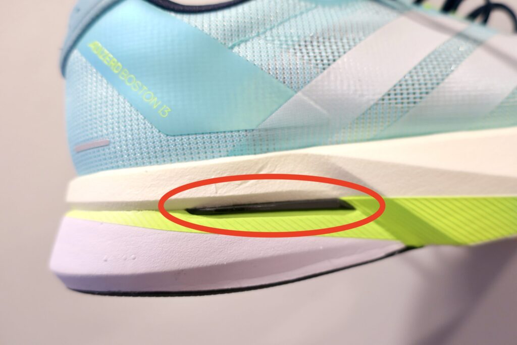 ミッドソール構造が似ており、違いは厚みと搭載されているプレート。プレートに関しては、両者ともに助力よりも安定感向上を目的とした物になっているため、あまり気にする必要はないと思う。『より薄く設置感を感じやすいアディゼロジャパン8』と『分厚く足を労わりながらも安定感の高いボストン13』っといった感じ。