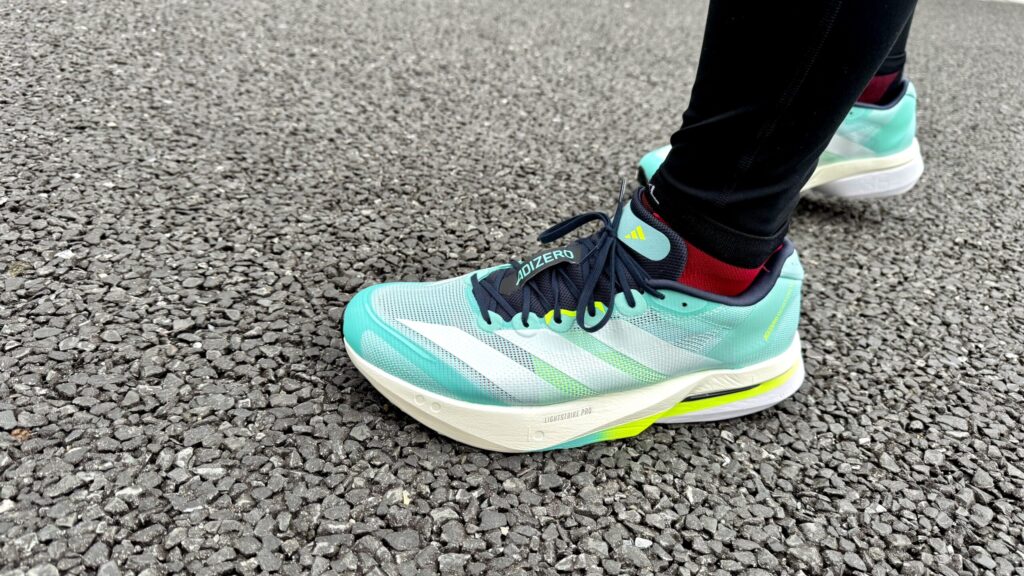 アディゼロジャパン8を分厚くしたシューズ。