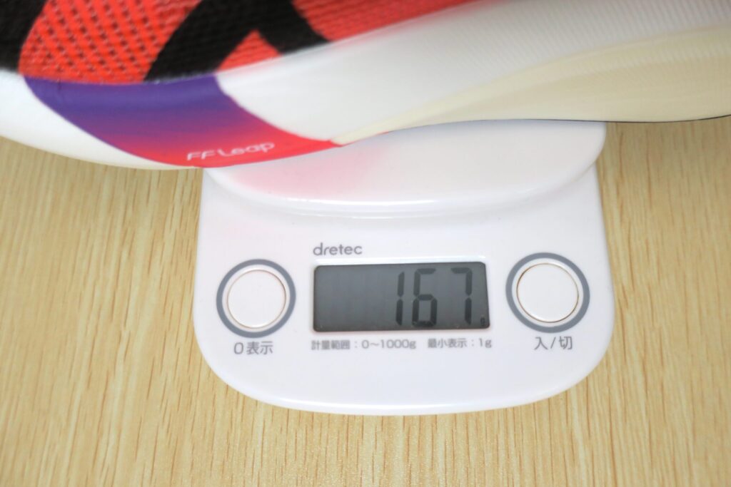 ミッドソール材はスプーン形状で搭載されたカーボンプレートを境目として、上部は柔らかい『FF Leap』。下部は硬めの『FF Turbo+』になっている。反発力は従来素材の『FF Turbo+』で十分に感じていたが、今回の新素材『FF Leap』でさらに強化された。シューズの反発力は強くなるほどエリート向けになり、扱いにくく感じてしまうものであるが『FF Leap』は柔らかく体重をかけるだけで潰れるため、体重の軽い人や蹴る力が弱いピッチ走法向けの方が、楽に長く足を回転させ続けることができるシューズに生まれ変わった。ただ、簡単に潰れる素材であるため安定感は低い。ロング走を行う場合は、姿勢が崩れない体幹の強さが必要になる。