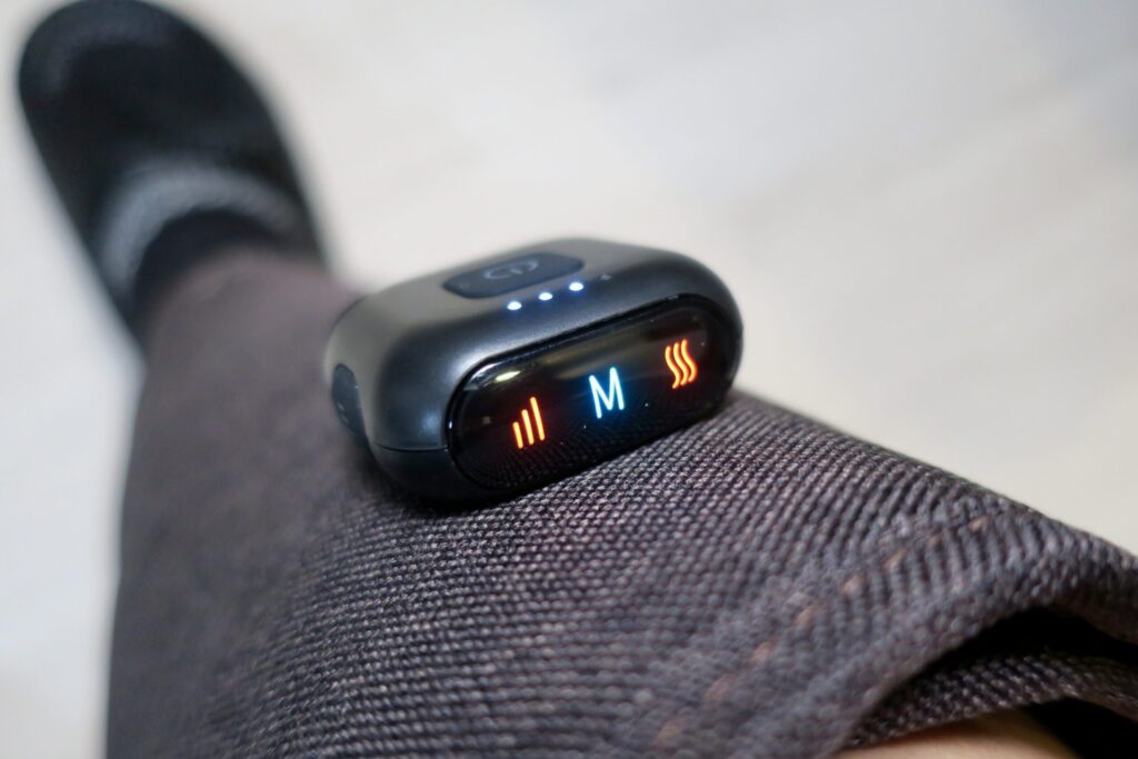 これが最大の特徴。マッサージに拘束されることなく、自由に過ごすことができる。またコードレスタイプであるため場所を選ばず、マッサージ中にPCやスマホで作業をするもヨシ。ソファで洗濯物を畳むのもヨシ。使い方は無限大。普段マッサージガンでケアをしている私からすると「両手が空くってなんて素晴らしいんだ!」っと感動した。
