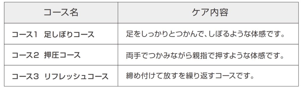 先の通り、バリカタふくらはぎを所有している私にはコースによる違いもイマイチ実感することができなかった。揉まれ方が違うことは触感で理解しているが、終わった後のスッキリ感がないためコースを変えても同じ感想になる。ヒラメ筋や腓腹筋などの痛い箇所に重点的なアプローチが出来ないのはマッサージ機の弱いところ。